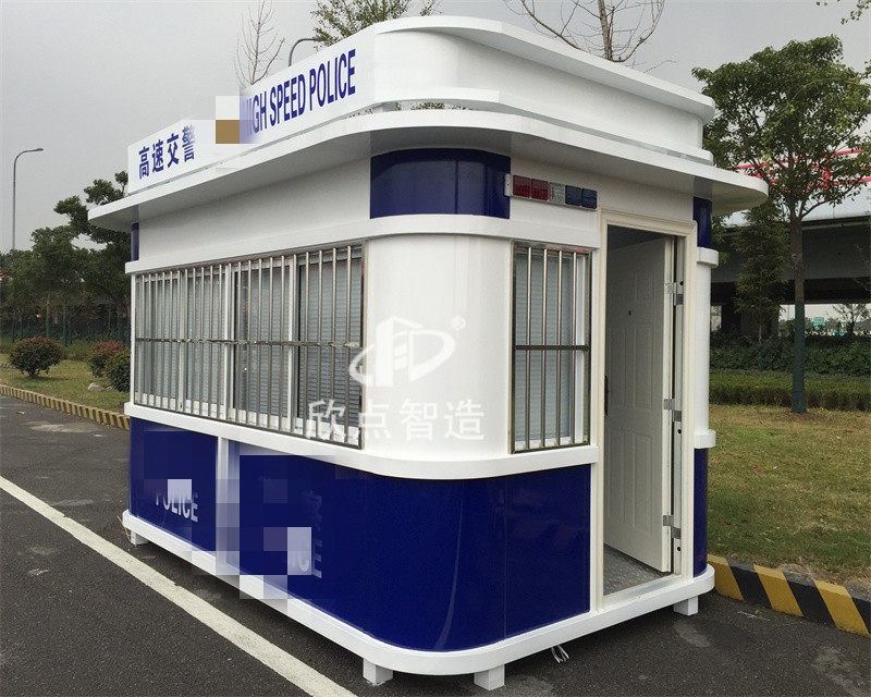 3、治安崗亭制作周期大約5-10天,相對于土建,成品治安崗亭周期短、造價低。大大的節約了大量的人工、物力資源、資金等。