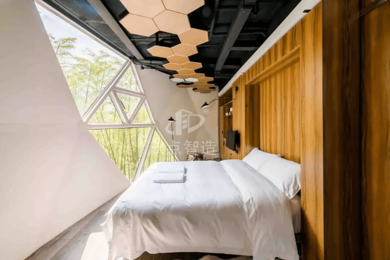 一天生產一個太空艙民宿的生產效率也相當可觀。全國三天可達一室一衛(wèi)一陽臺的布局28個平方的覆蓋范圍也很實用。